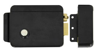 Электромеханический накладной замок, НЗ, универсальный, цилиндр снаружи, кнопка изнутри, ролик взвода пружины, сталь, цвет черный, 12 В, 3, 5 А, 163х47х103 мм. Масса брутто 1300 г. Допускается использование электромеханического замка в диапазоне температур окружающей среды от -30 градусов С до +50 градусов С