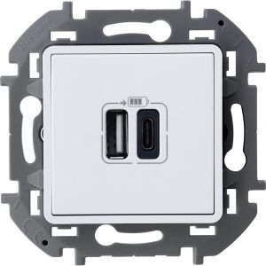 Зарядное устройство Inspiria для скрытого монтажа , тип А-тип С, цвет ''Белый''. Напряжение ~240В/-5В, максимальный зарядный ток 3000 мА. Применяется для непосредственной зарядки одного или двух мобильных устройств - смартфонов, планшетов, умных часов, фитнес-трекеров и т.д. Оснащно разъемами двух стандартов для поддержки все